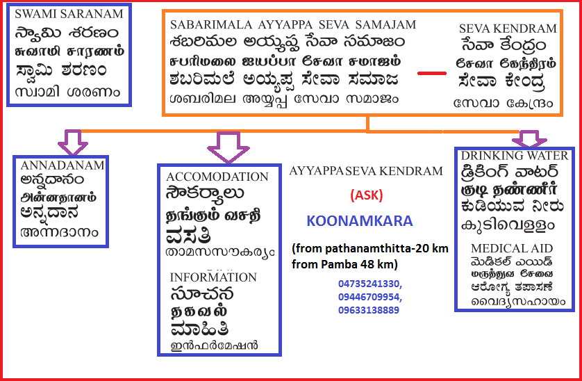Along with spreading the values and principles of the Lord Ayyappa, the organization is currently engaged in services such as the distribution of free meals, empowerment of the tribal community, conducting healthcare camps, providing academic scholarships, supporting in the event of natural calamities, conducting cultural events, etc. The trust is situated in an area of an 18-acre plot. To uplift the community, the proposals to start new projects and expand existing projects such as Sabari Ashramam, Annadana Kendra, Rehabilitation centre, Hospital, Manikanda Gurukulam, Ayyappa Museum, Gosala, etc, have been laid down. Through selfless services, the organization focus on serving the pilgrims and building strong ties within the community...